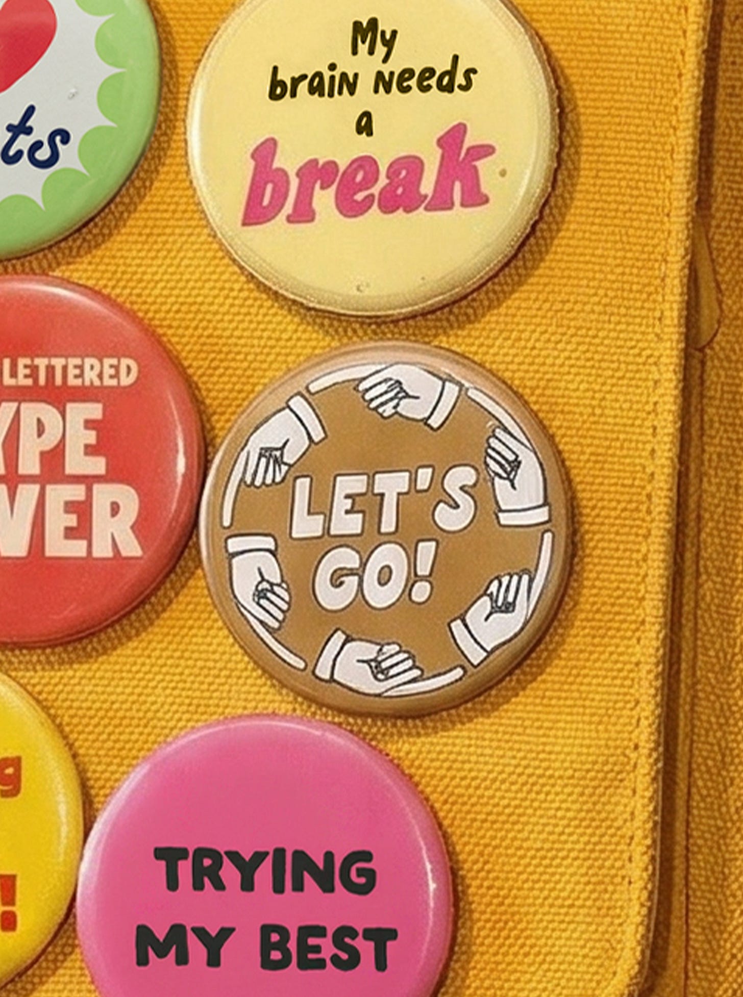 Yes, I did spend a whole day glued to my computer making fun button pin designs. :) If you need an activity, I recommend.